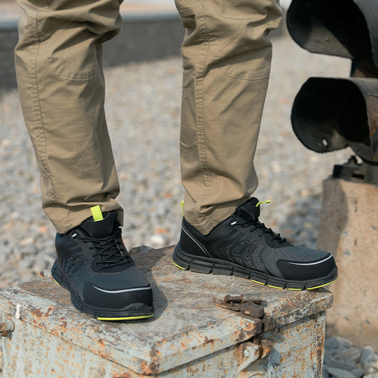 Our composite toe caps reduce weight by 40% compared to traditional steel toe caps, offering a lighter, more comfortable experience for your feet. Ideal for long hours on the job, these safety work shoes help reduce fatigue while providing reliable protection.