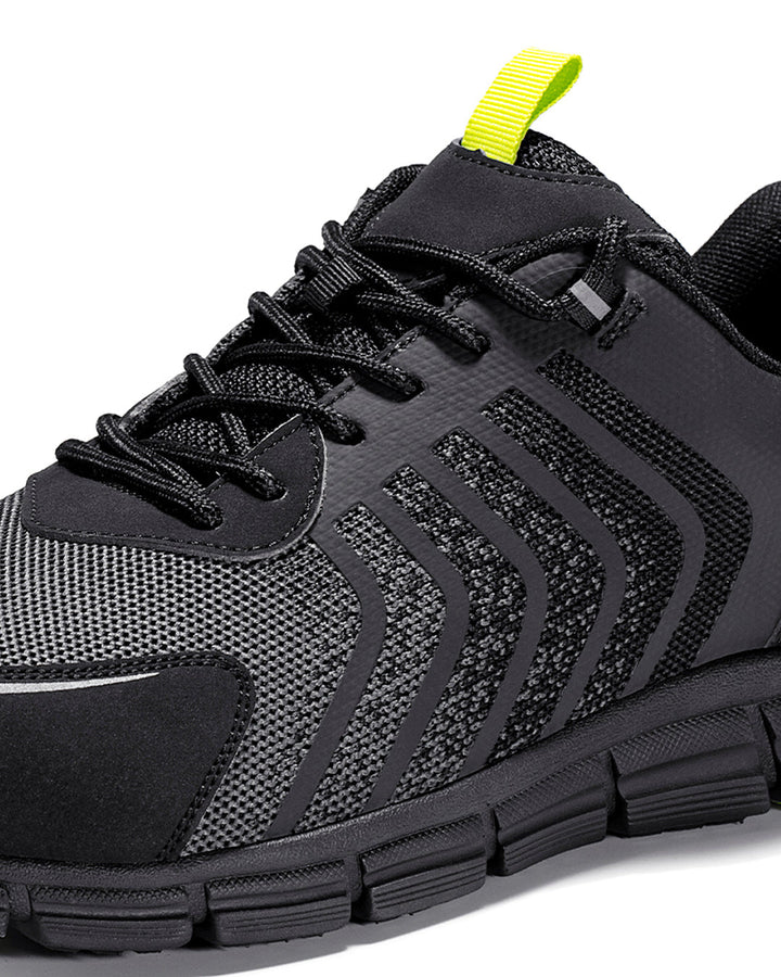 The full-length rubber outsole with deep grooves and patterns provides excellent slip resistance and grip, ensuring stability in wet or slippery conditions. The shock-absorbing design protects your feet from impact during running or jumping, perfect for high-demand workplaces and outdoor tasks.